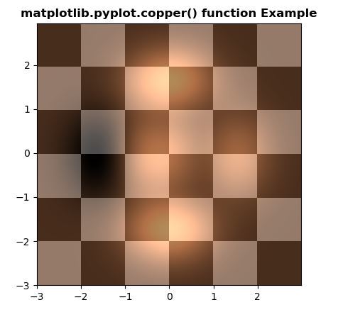 Функция Copper () в модуле pyplot библиотеки matplotlib используется для установки цветовой карты на «медь».