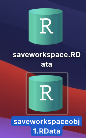 # creating data objectsobj1 <- c(1:5) obj2 <- FALSE obj3 <- "Geeksforgeeks!!" # saving all data to the pathsave.image("saveworkspace.RData") |